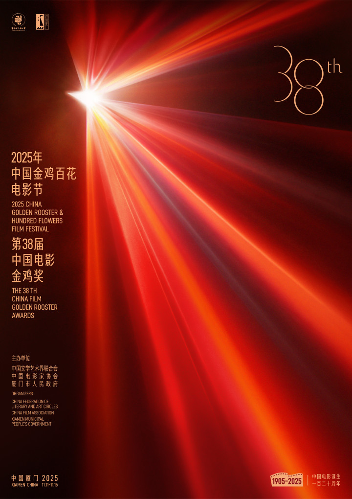 2025年中国金鸡百花电影节海报则以“光之羽”为核心,将光束凝为金鸡羽翼,既象征中国电影的生命力与艺术超越,也彰显电影节积极向上的艺术追求。2025年适逢中国电影诞生120周年,亦呼应1905年“影戏”首现厦门的历史节点,画面以炽热红色为主调,光芒如号角般铺展,传递着中国电影120年辉煌的激情与未来的无限可能。